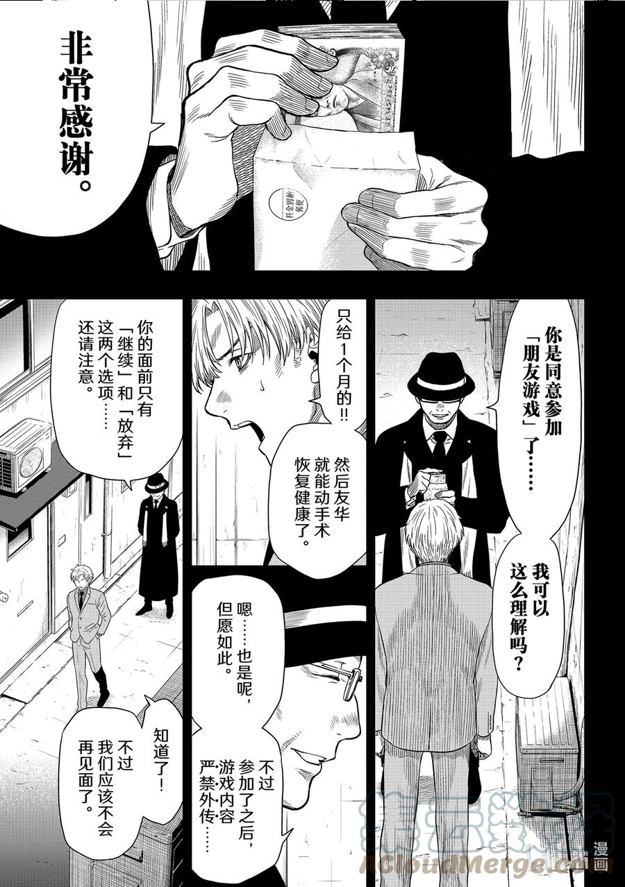片切友一的修学旅行费被盗,犯人就在自己的4个好友当中。那个人因为身欠巨债,所以偷走旅行费并报名了“朋友游戏”,就这样5人一起卷入了这场游戏之中,友情即将面临金钱的考验!