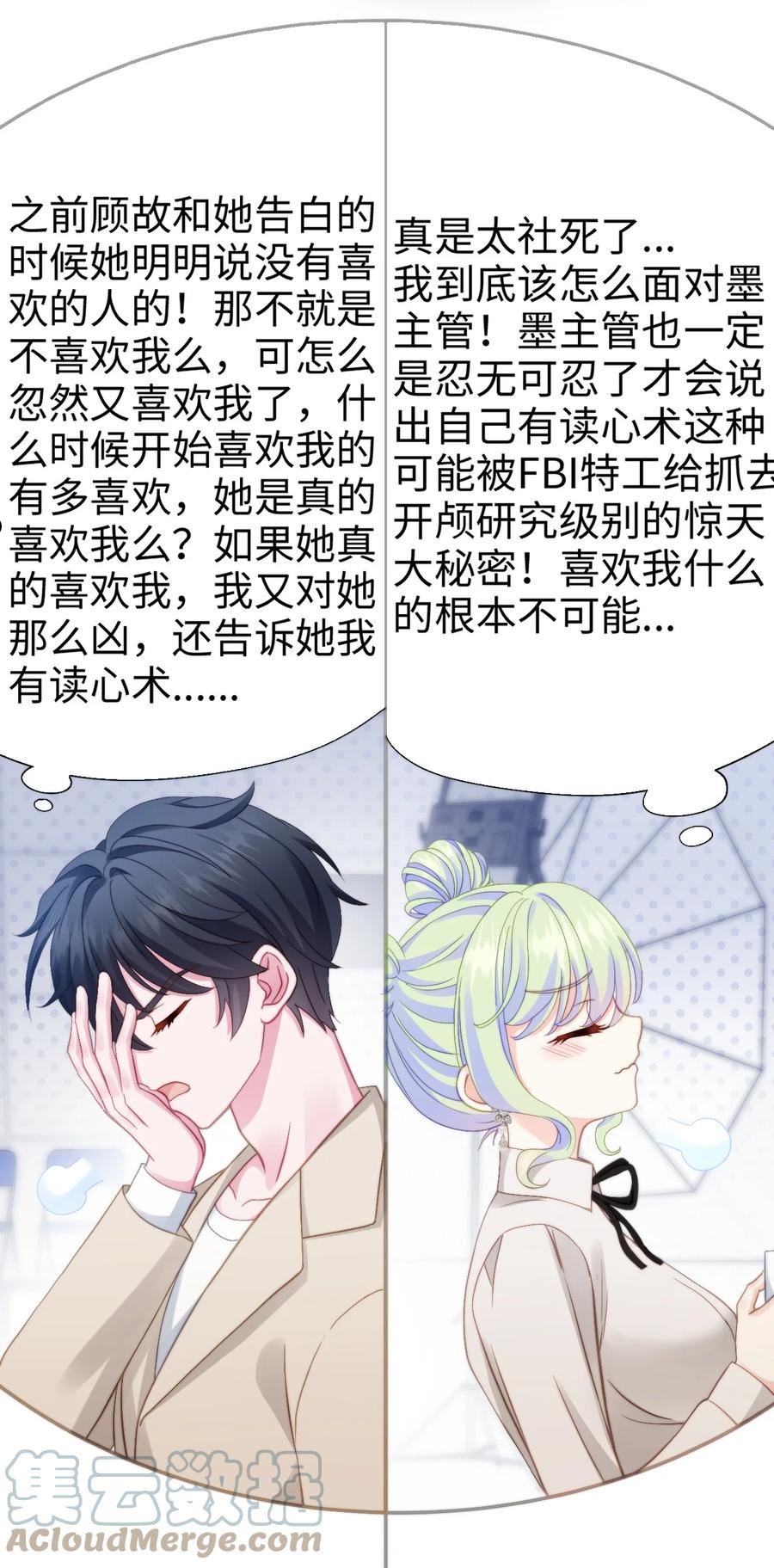 简介超能力男主X超级妄想症女主,双向暗恋究能不能修成正果呢?墨迩(男主)是融媒体中心最年轻的影视中心主管,同时也是一位有着“读心术”的超能力者。他最欣赏的就是具有想象力的人,而他手下来了一位新人实习生李依甜(女主),就想象力超群。却时常脑补以他为主角的各种play。墨迩既烦恼又享受着被李依甜“暗恋”的快乐。一直在等着李依甜对他表白,却不知道李依甜是在拿他当自己漫画的创作素材。整天YY墨迩的李依甜到底会不会也喜欢墨迩呢?