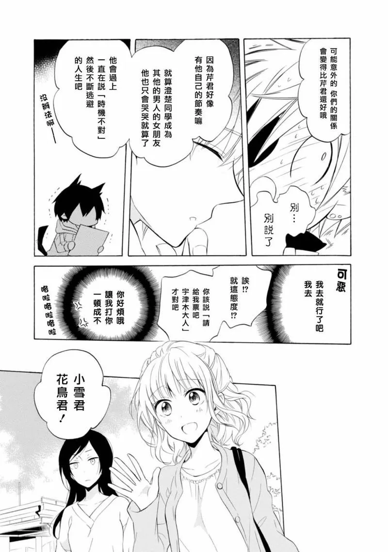 被邀请参加桐藤渚茶会的日富美。一起度过了愉快的时光。她开始想更多地和渚在一起,但她缺乏自信,感到困惑。此时,日富美被仰慕渚的学生拦住了…… 互相思念的渚与日富美,能够相信爱情吗?