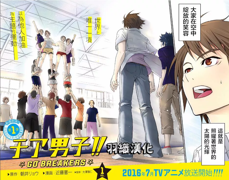 拉拉队男子GO BREAKERS又名男子啦啦队!!,类型为体育竞技的高人气漫画,漫画简介:又名:男子啦啦队!! 《男子啦啦队!!》是由日本小说家朝井辽创作的青春小说。如标题所说,讲述了一群男生为了“世界上唯一一个能够给别人加油的运动”而挥洒青春汗水……