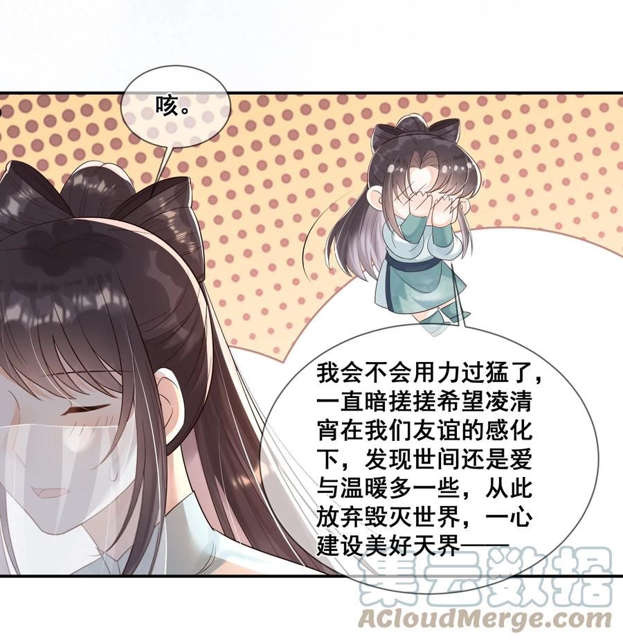 洛晗看了一本人人恋爱脑、为了爱情不顾一切的仙侠小说,之后被召唤穿书,得知原来她是小说里的天道化身。小说后期,主角们为了爱发动战争,差点毁灭世界。她为了自救,只好走上拯救世界之路。想要制止战争,最好的办法就是把黑化男二掰回来。但洛晗穿过去时已经太晚了,凌清宵已然掉入深渊。她只能救起凌清宵,天天跟他念叨真善美,试图让他好好搞事业,不要谈恋爱。