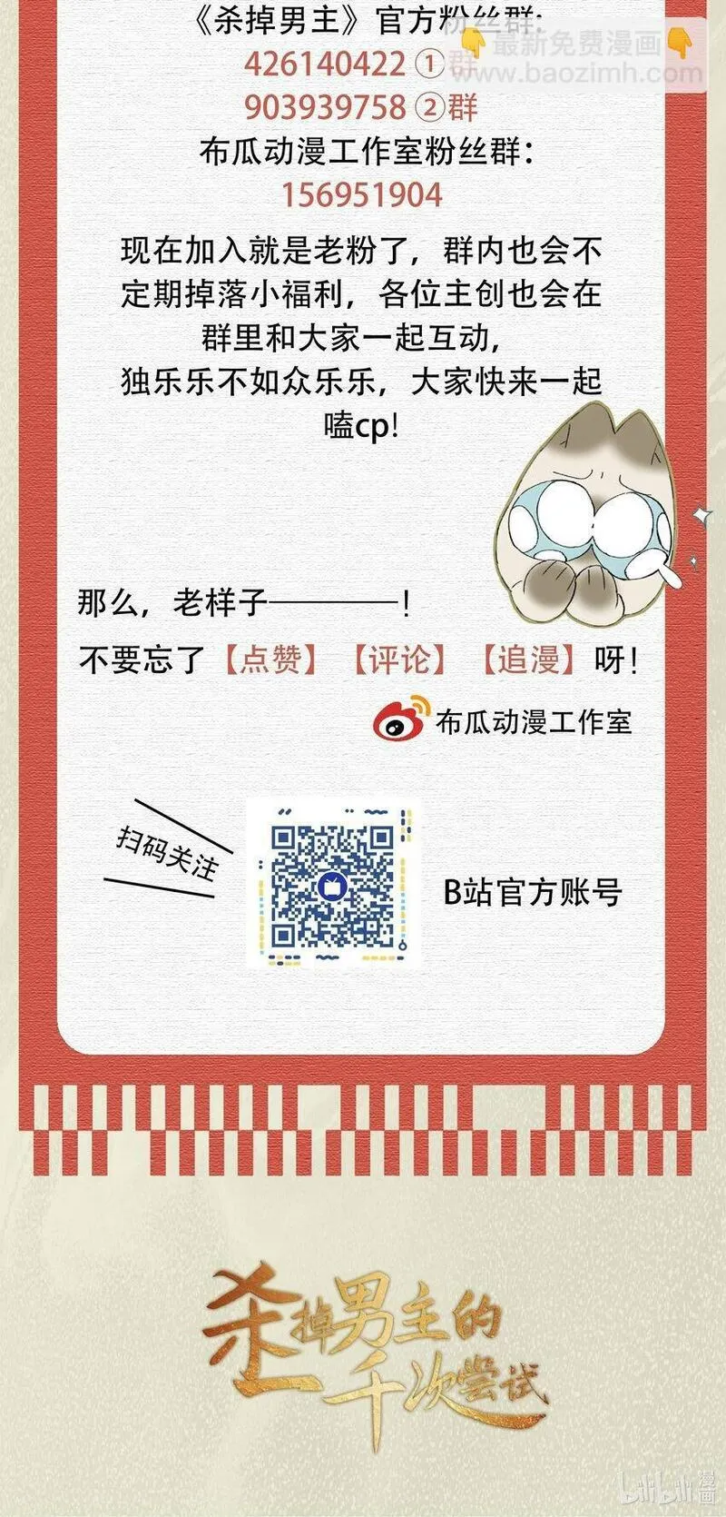 杀掉男主的一千次尝试又名,类型为古风的高人气漫画,漫画简介:网文作者不幸穿书成了自己笔下的虐恋文女主勖王妃。而她精神错乱时写的男主勖王,更是个人格分裂的集大成者\,当今皇帝的唯一亲弟弟,但并没有多少权力,头上还有太上皇,太后,太皇太后三座大山。瑟瑟发抖的女主何去...