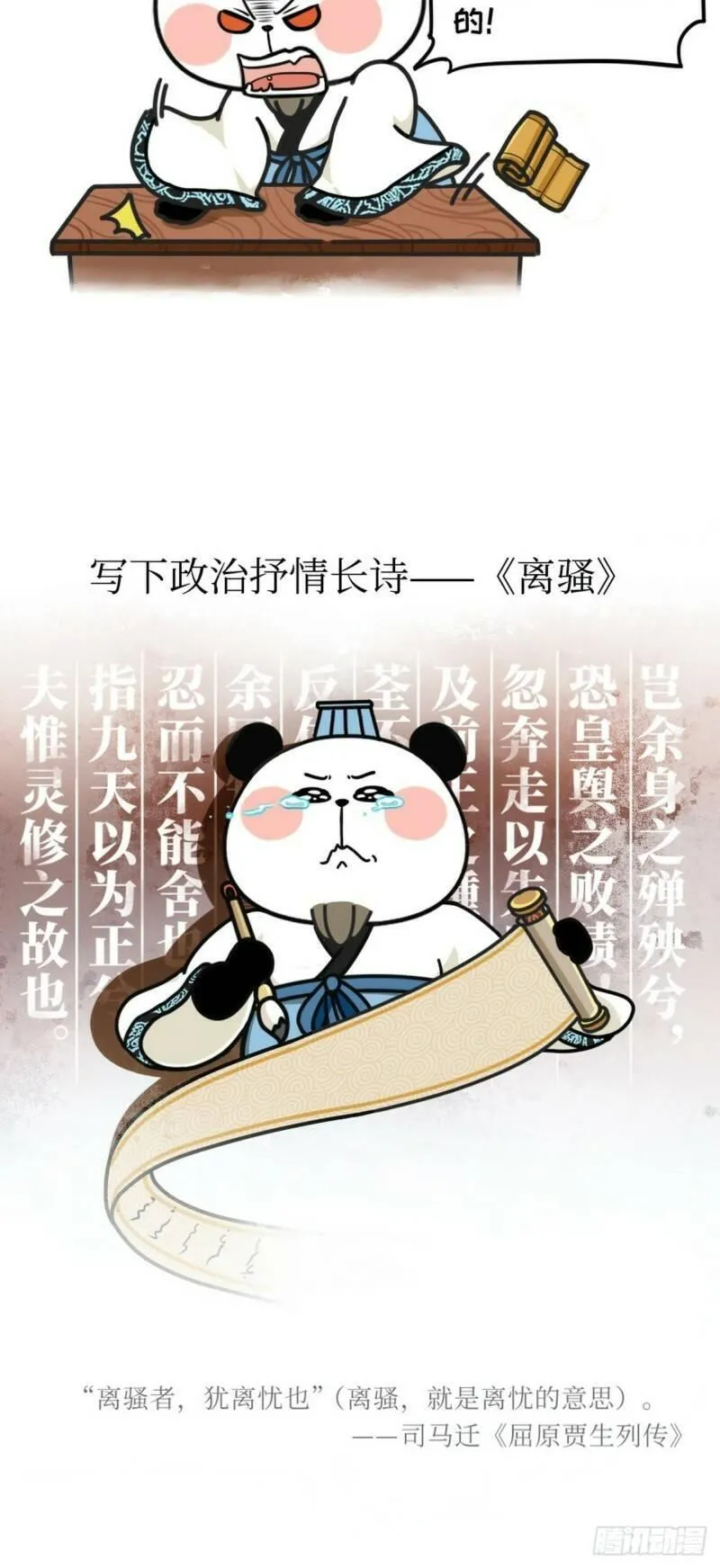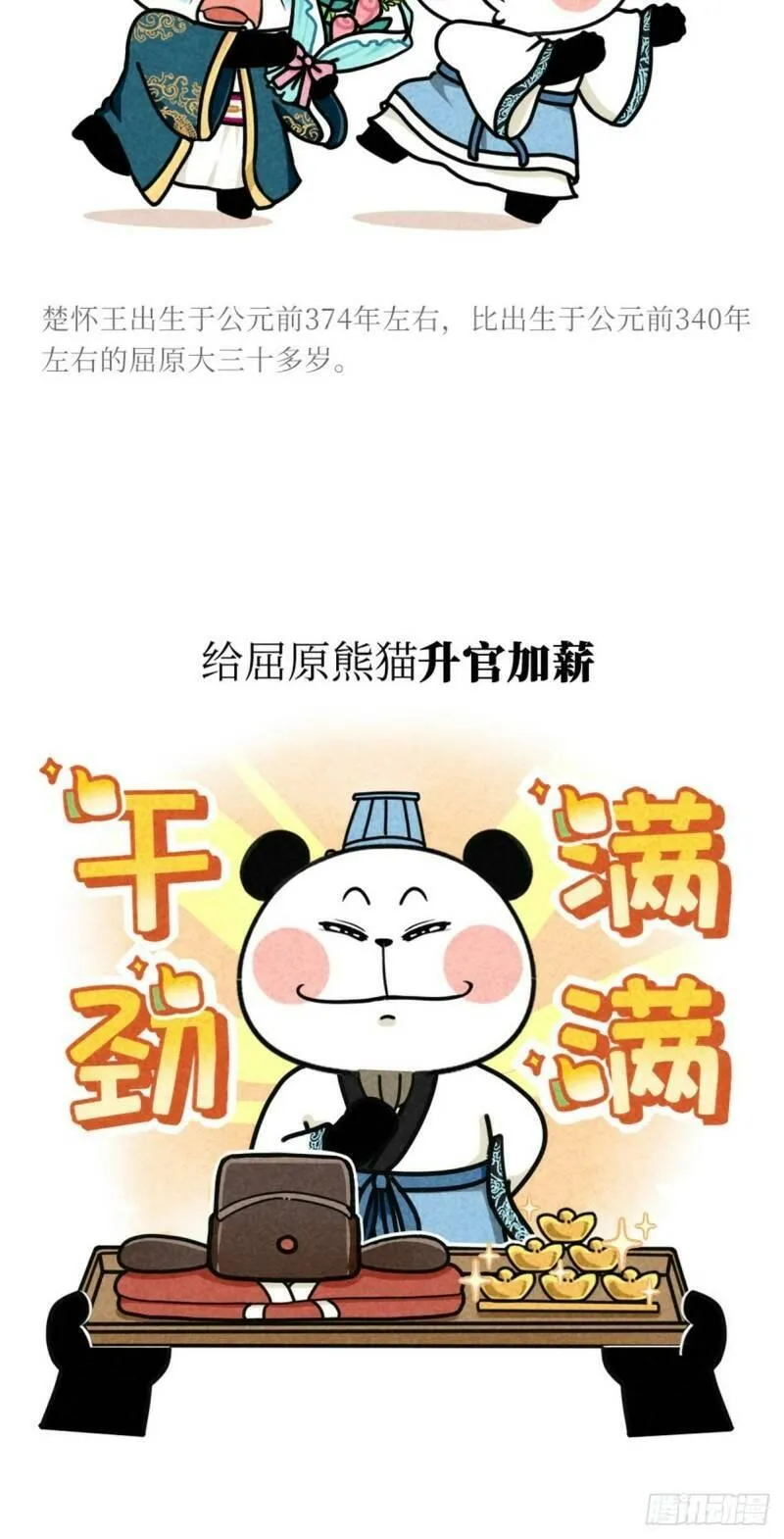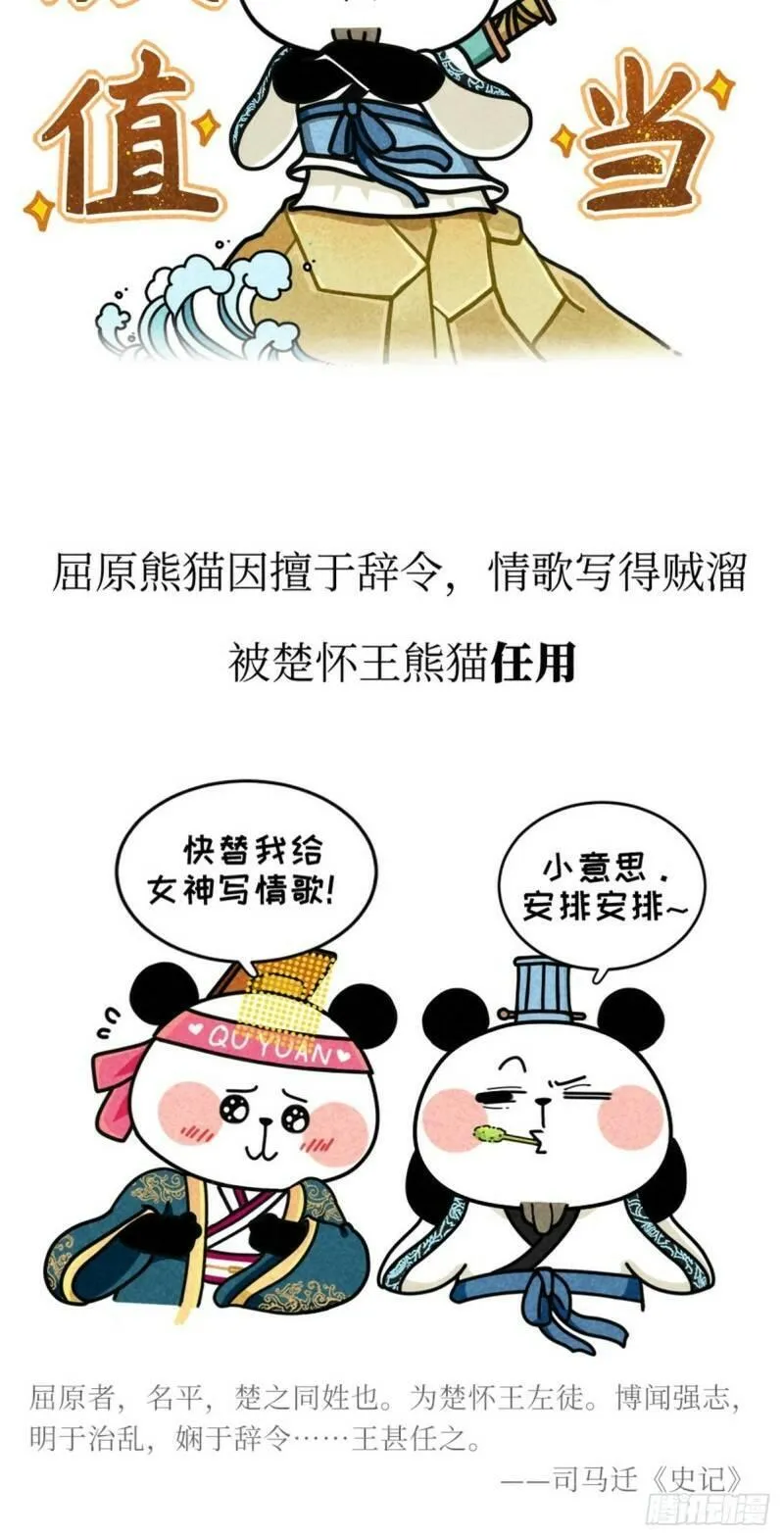熊猫文豪天团又名,类型为冒险|热血的高人气漫画,漫画简介:仓颉如何造字、屈原到底怎么出道的、那些必备古诗文的作者到底是怎么想的?曹操、潘安原来也是大文豪!而王羲之也有不为人知的有趣一面……跟随历史的长河,用萌趣的熊猫形象演绎中国古代文豪的生平故事和名作背后的...
