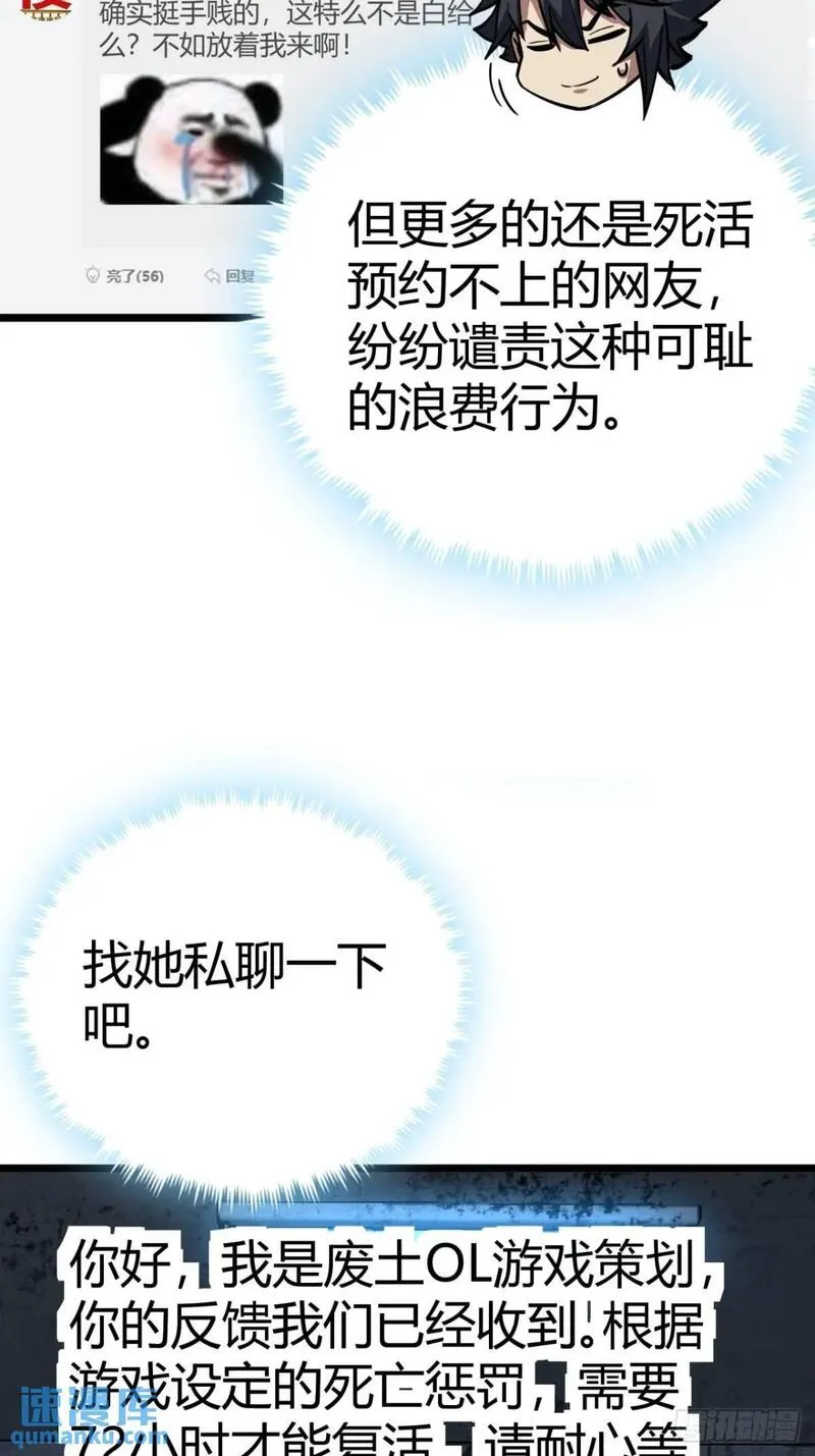 这游戏也太真实了又名,类型为穿越的高人气漫画,漫画简介:开局一座避难所,忽悠玩家来干活,我就是废土ONLINE主策兼客服——楚光。穿越到未来末日废土世界的我既然意外开启高科技避难所从此招募玩家当小弟,杀怪升级SOEASY。看我如何在充满变异怪物的世界建立起...