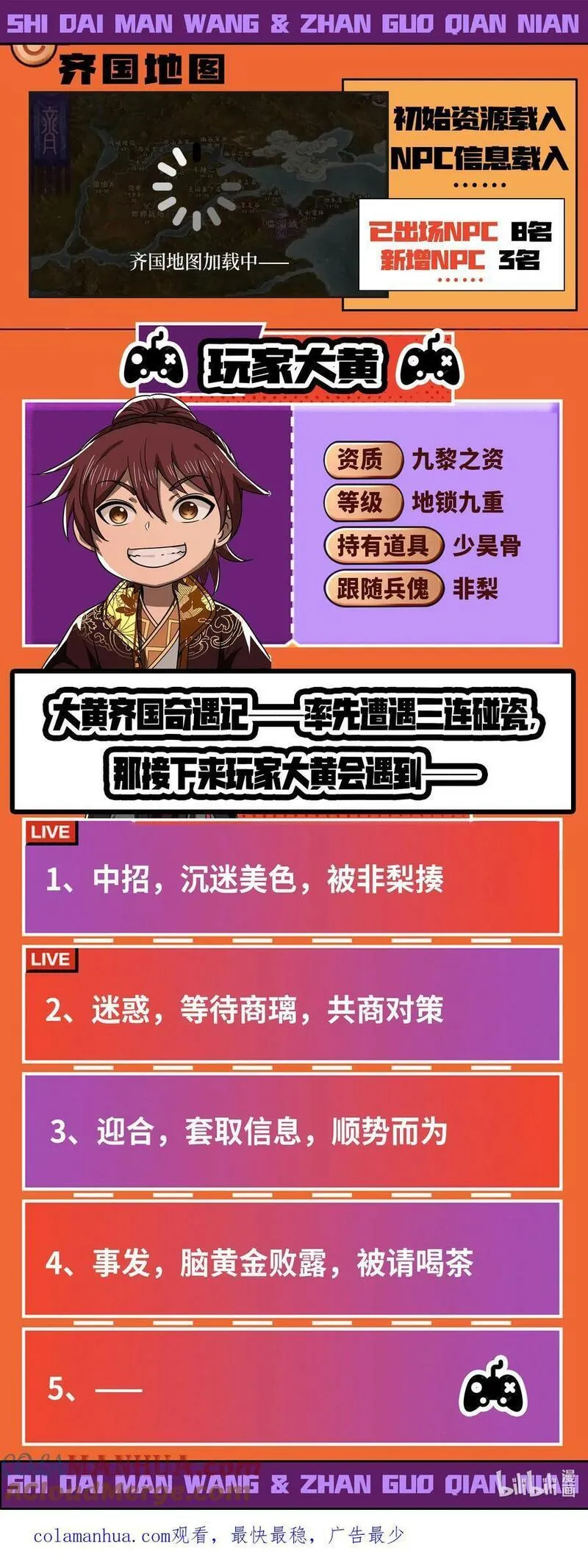 姬青穿越到了高武版的春秋战国时代。然而,历史的轨迹并没有按照既定的道路前进,风萧萧兮易水寒,咸阳宫内荆轲刺秦成功,七国群雄并起,战国延续千年。豪侠任勇与百家科技并存,世家忠义与群雄逐鹿秉承,这个战国是七国征战的时代,也是英雄崛起的时代。且看不死之人姬青,出雍城,进学宫,以九黎之资,纵横乱世。